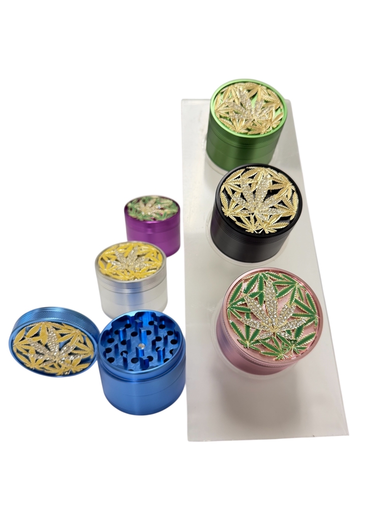 63MM 4 Parts Aluminium Alloy Hemp Leaf Diamond Design Herb Grinder (70983)