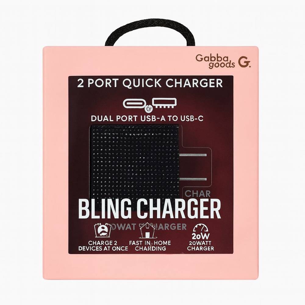 Bling 20 WATT 2 Port Quick Charger USB-A & C PORT – BLACK