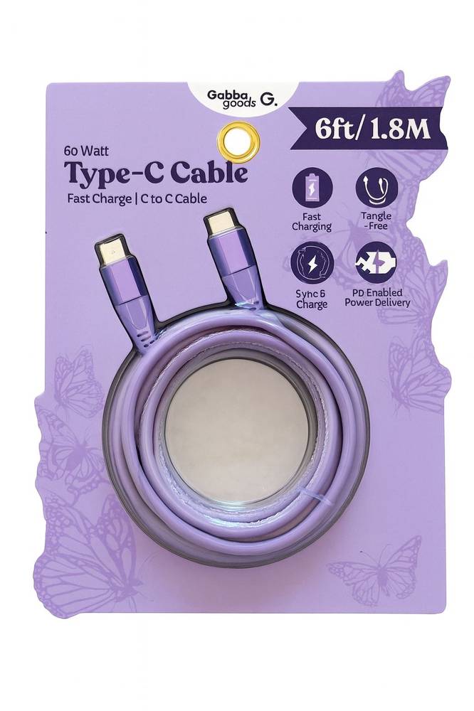 Gabba Goods 60 WATT 6FT TYPE-C FAST CHARGE C TO C CABLE – Lavender