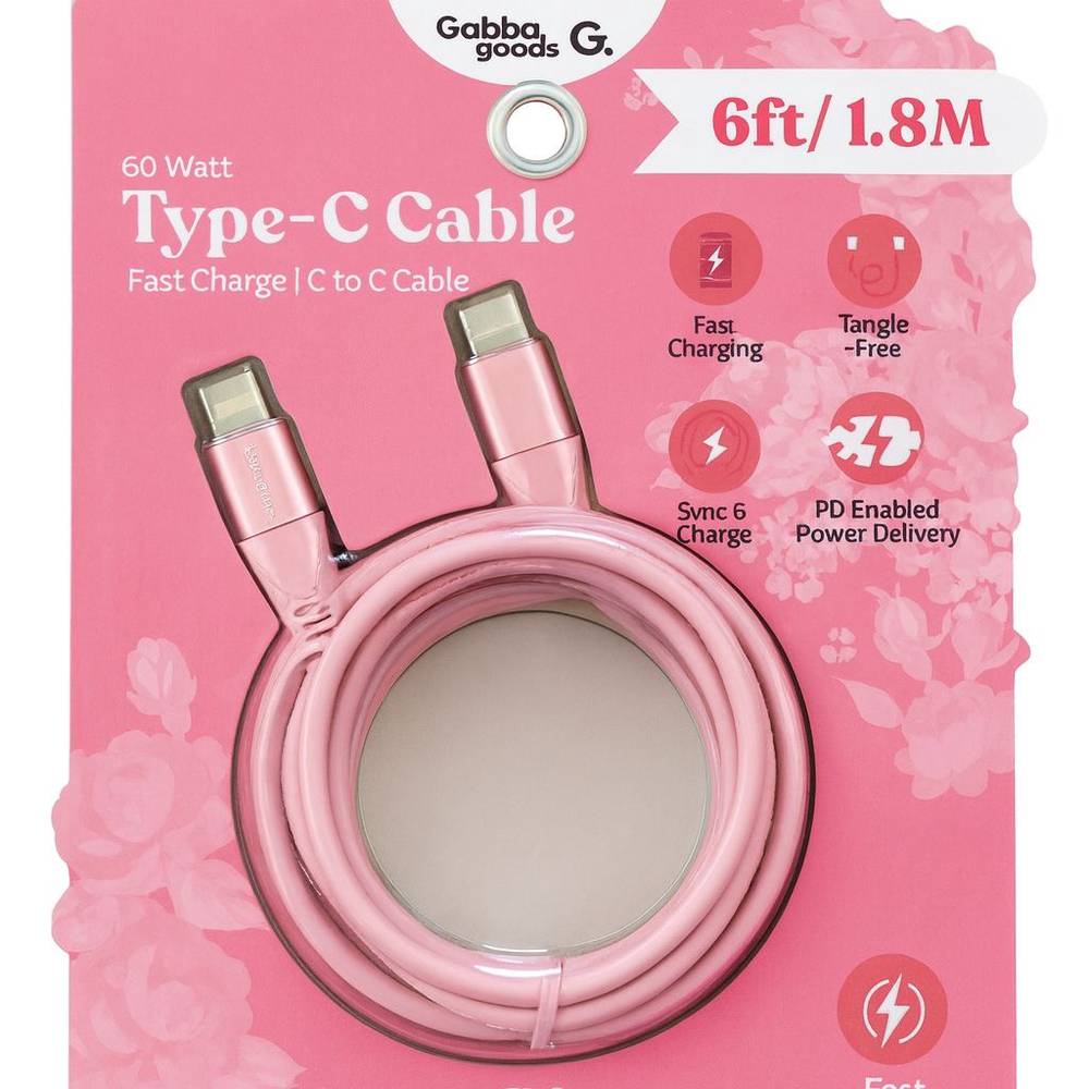 Gabba Goods 60 WATT 6FT TYPE-C FAST CHARGE C TO C CABLE – Pink