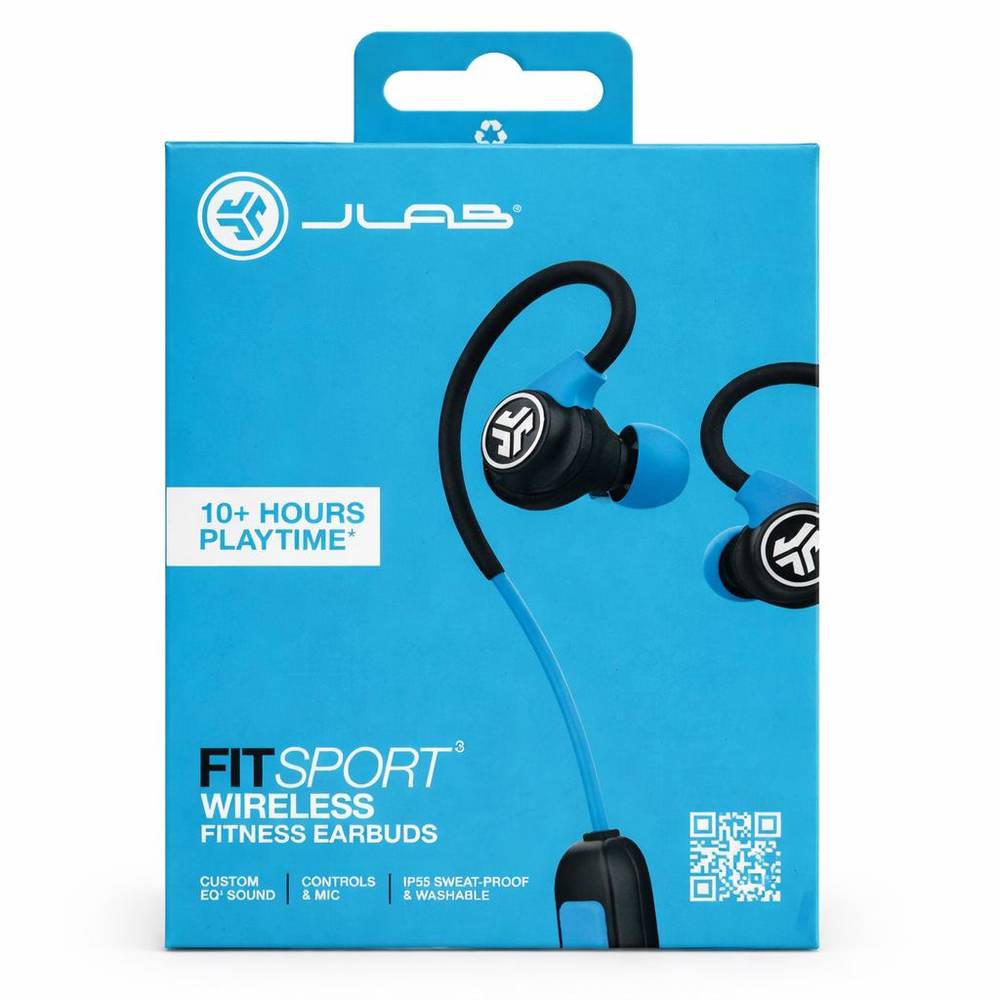 JLab Fit 2 0 Bluetooth Enabled Wireless Sports Earbuds Bluetooth 4 1 10mm Titanium Drivers 6 Hour Battery Life IP55 Sweatproof Flexible Memory Wire Blue