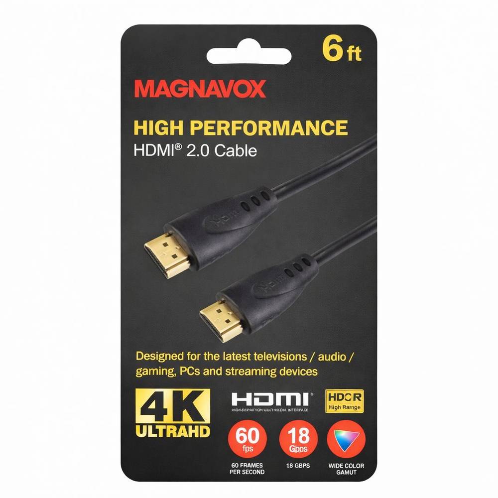 Magnavox 6 Foot High Speed 4K ULTRHD HDMI Cable – Black