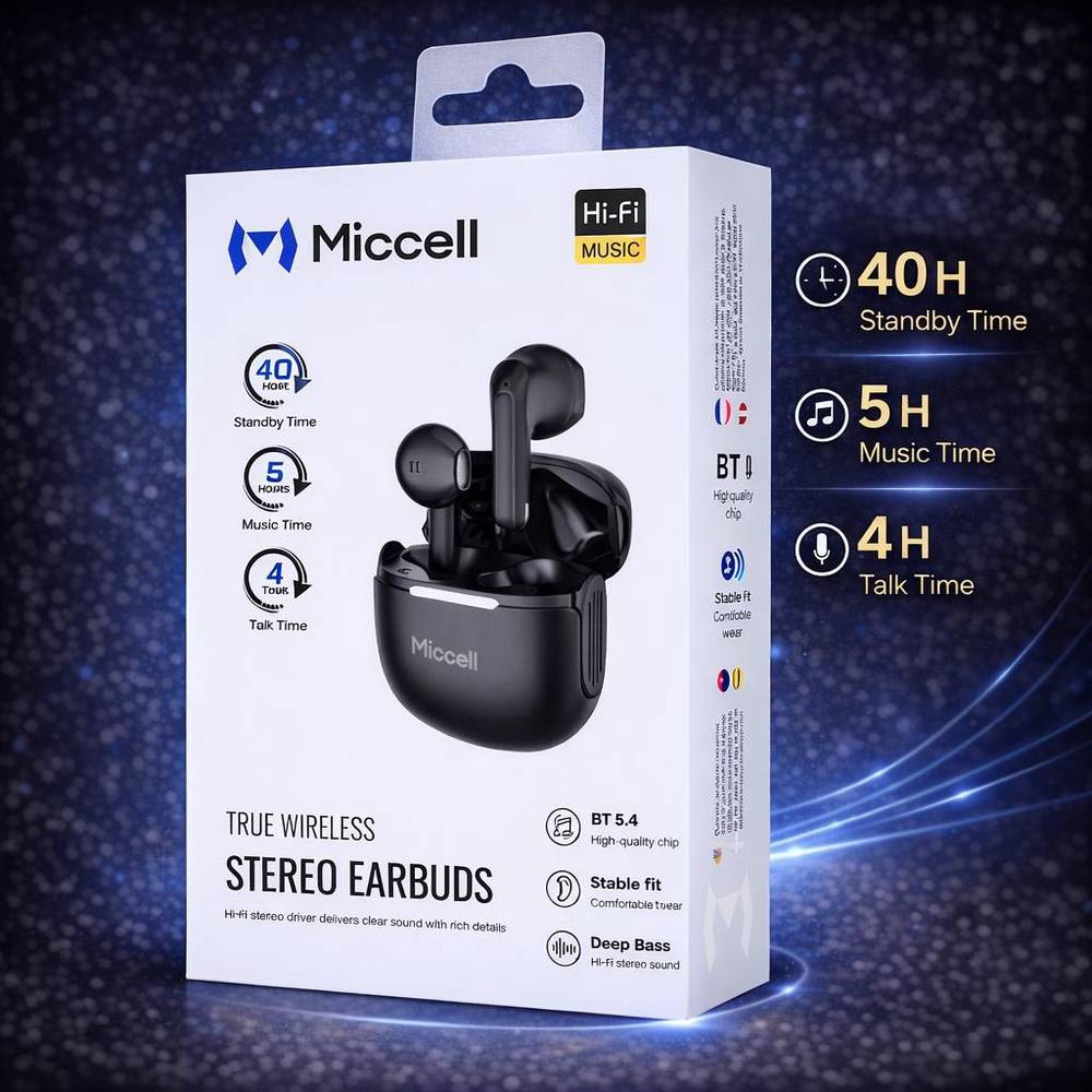 Micell BH109 True Wireless Stereo Earbuds with Charging Case – Black