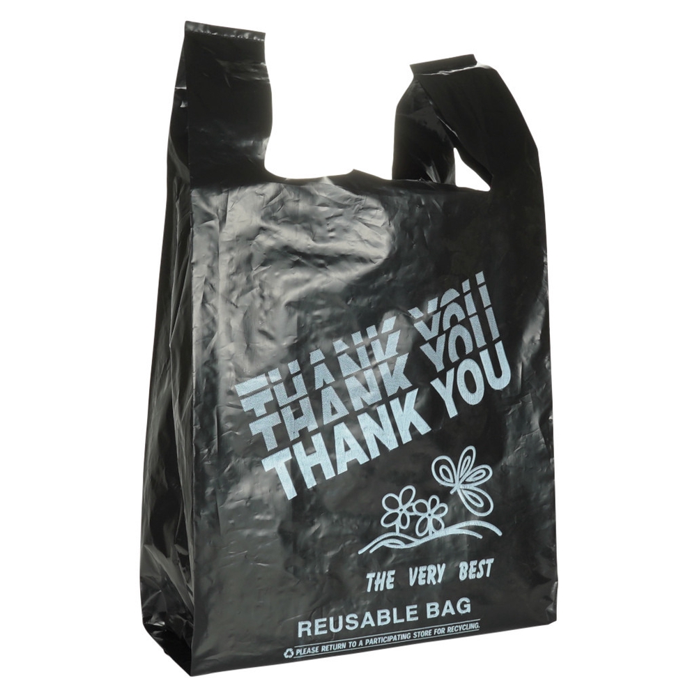 Black Reusable T-Shirt Bags 12inx7inx22in 45mic (200pcs) (30362)