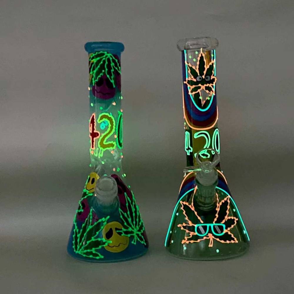F132 – 10″ Glow in the Dark Leaf with 420 Design Beaker