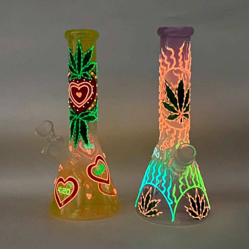 F133 – 10″ Glow in the Dark 420 Love Design Beaker