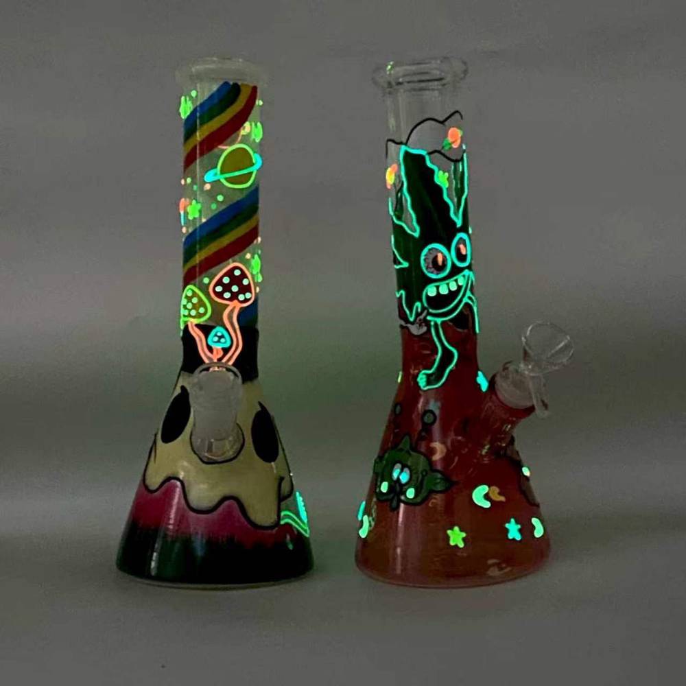 F133 - 10" Glow in the Dark 420 Love Design Beaker