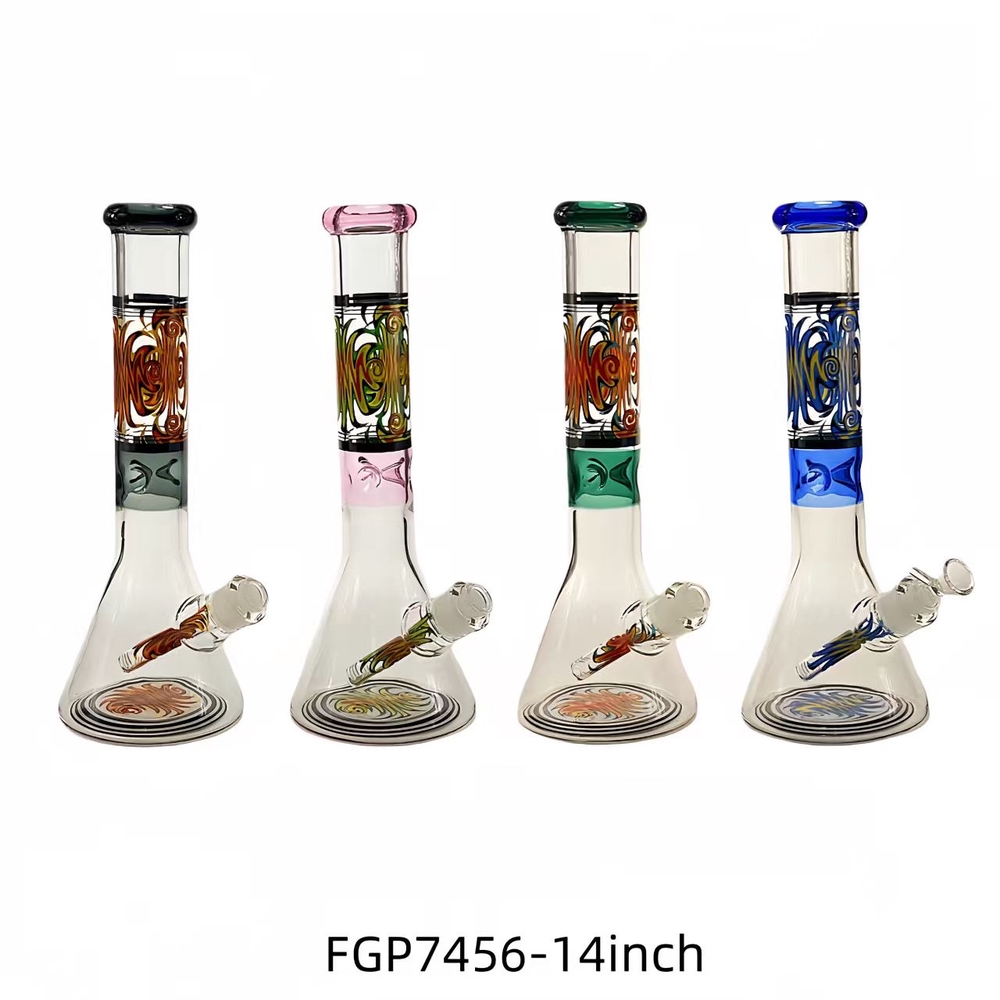 F99- 14″ 7MM Thick Wigwag Design Beaker Water Pipe