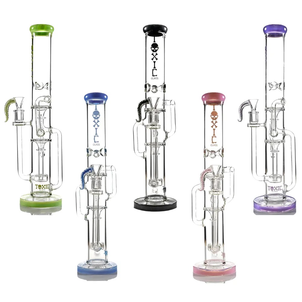 Want to add a new piece to your smoking collection? Look no further because Toxic Glass Works present their recycler water pipe. Its simple sleek design makes it the perfect smoking piece. Standing at 16″ tall this piece is guaranteed to become a staple in your collection. A matching color horn bowl adds the perfect touch. Don’t sleep on this sleek piece.