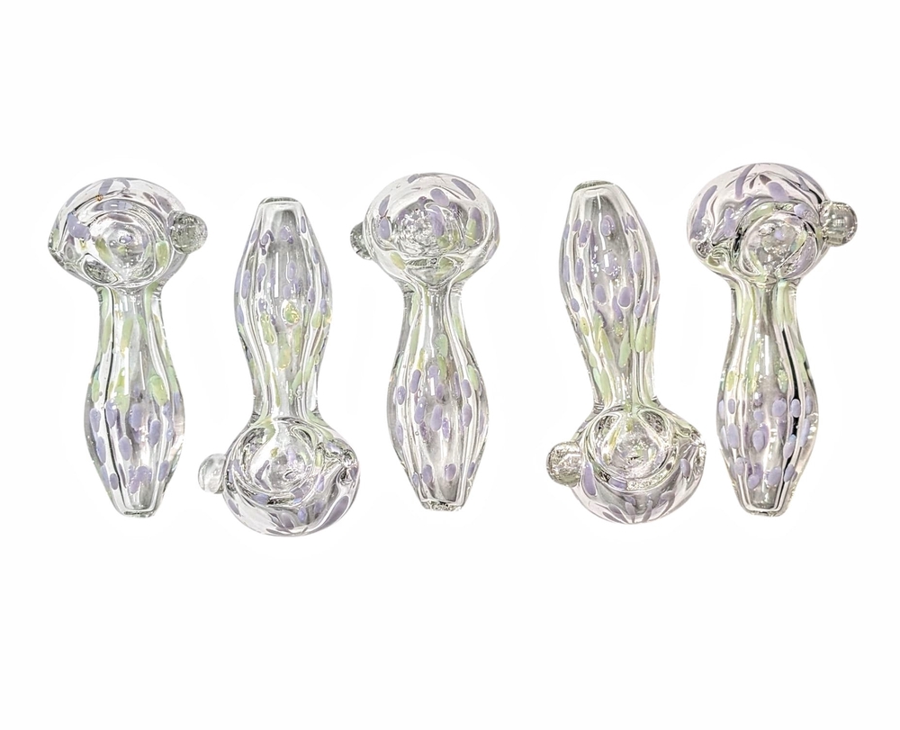 H44 – Clear With Purple and Green Dots Hand Pipe (Pack of 5) (Unit Cost $2.99)